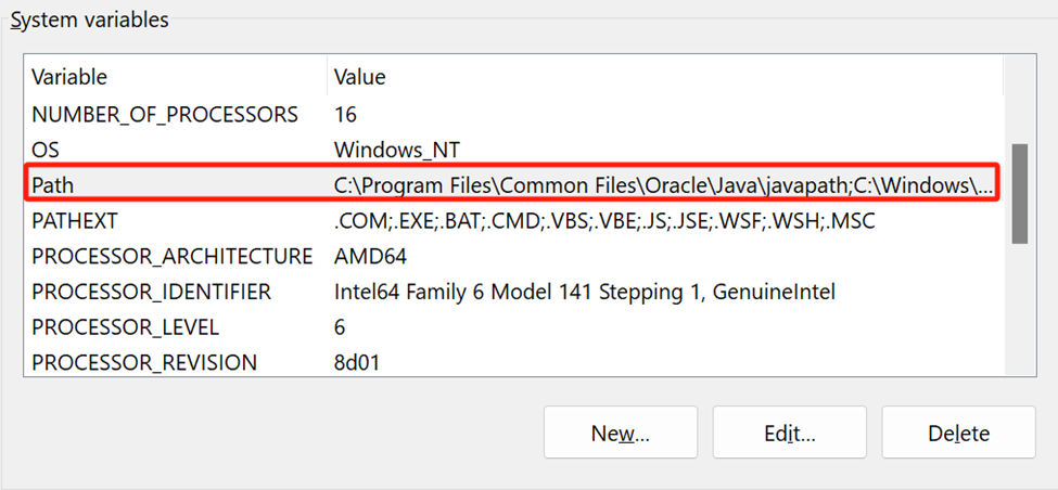 14. Then, please go to System Variables, find a variable called “Path”. Double-click it.