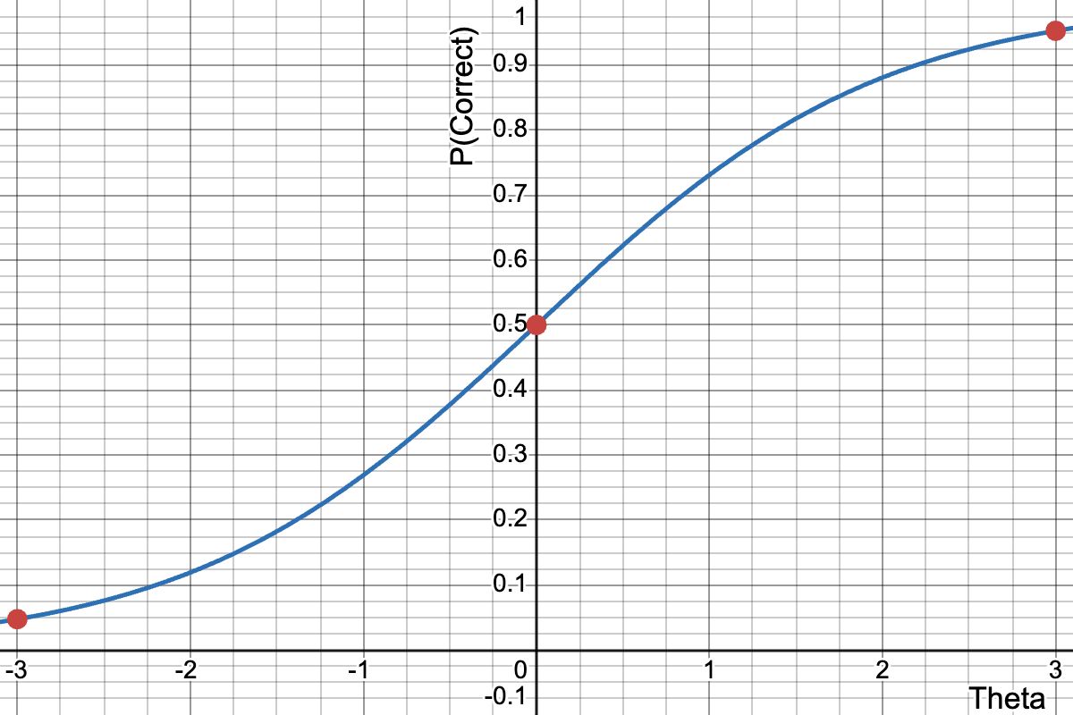 From these parameters, we can compute the probability P(θ) that the learner will get the item correct