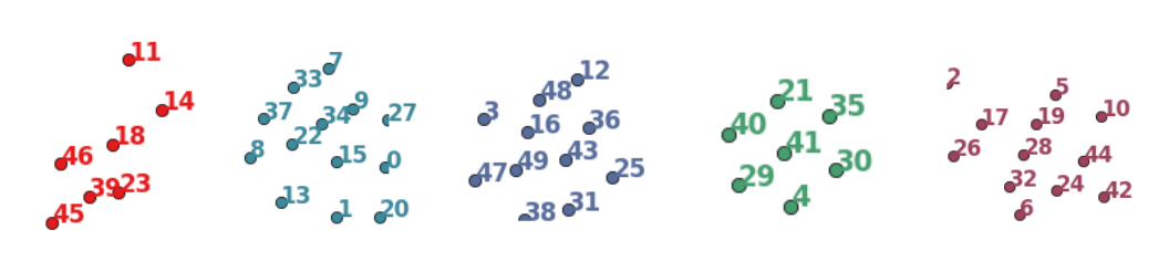 DKVMN can cluster the exercises in the Synthetic-5 dataset into their five ground-truth concepts.