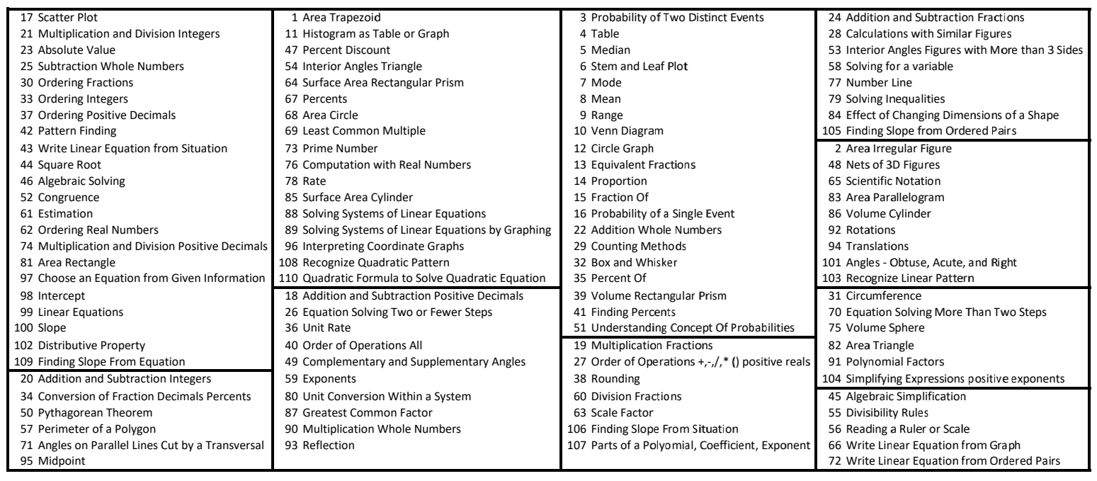 Human-derived skill-item mapping used